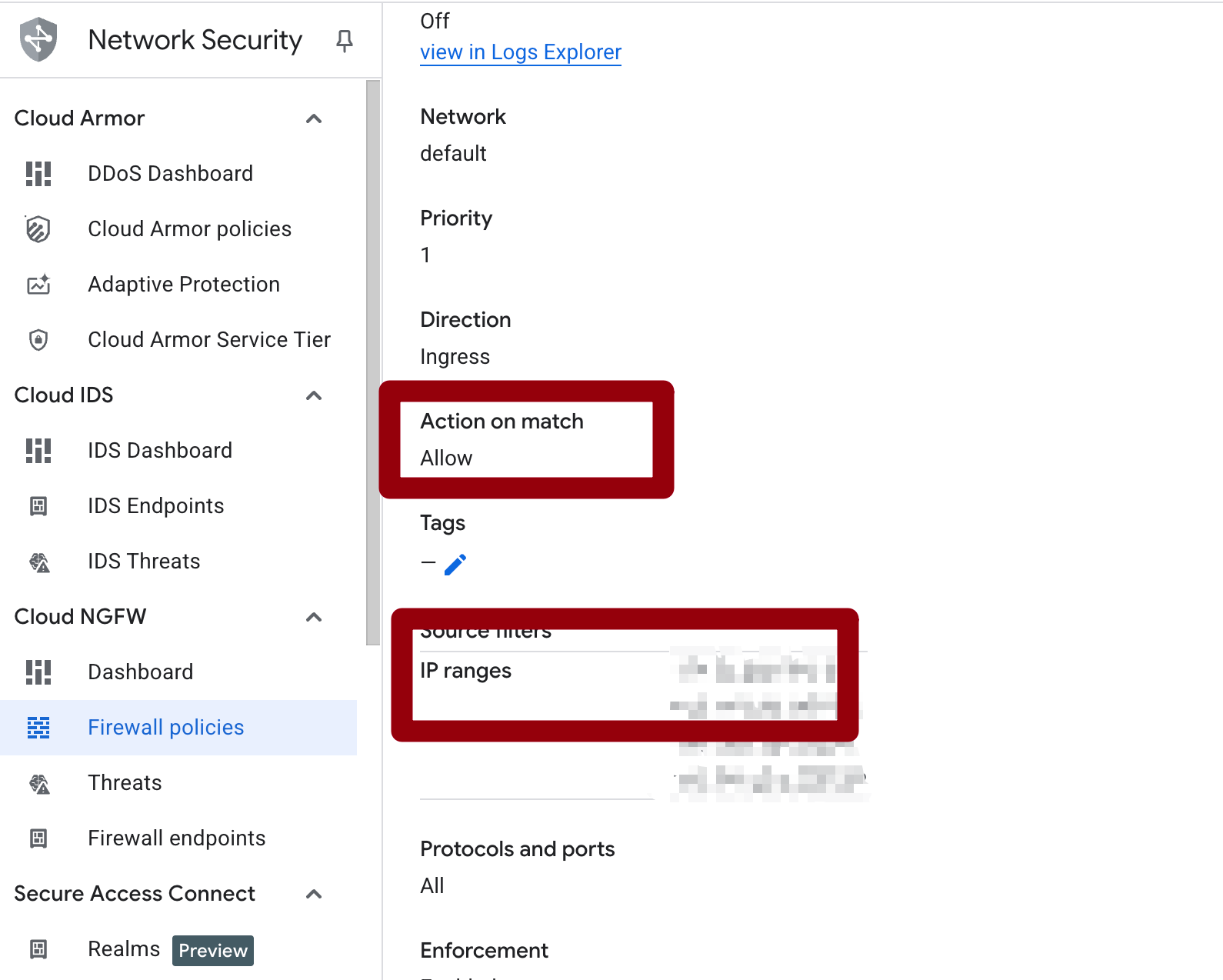 另外就是防火墙设置了,我这里做的比较激进,只允许入站,三个我的入站 ip,其他全部禁止了。值得注意的是,我这个 gcp主要是挂一下小服务的,不用做代理。